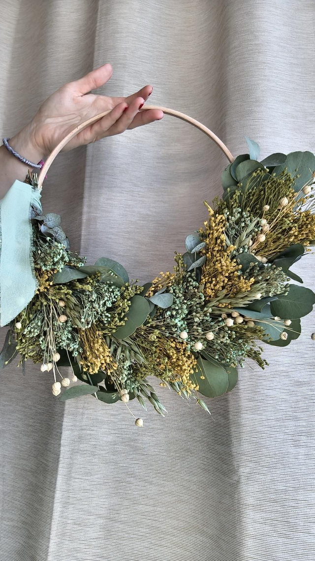 30-35 cm átmérőjű szárazvirágos ajtódísz.